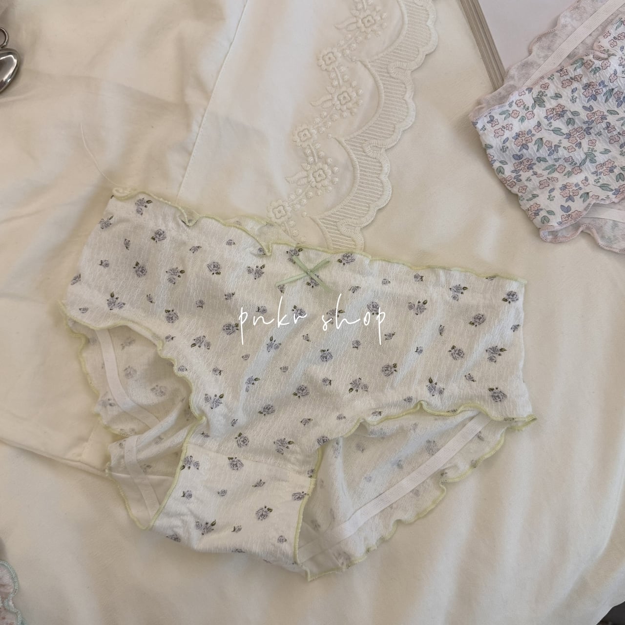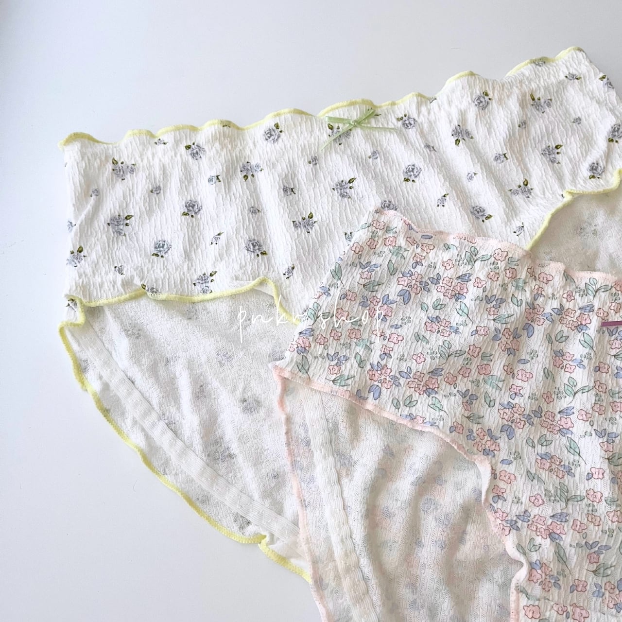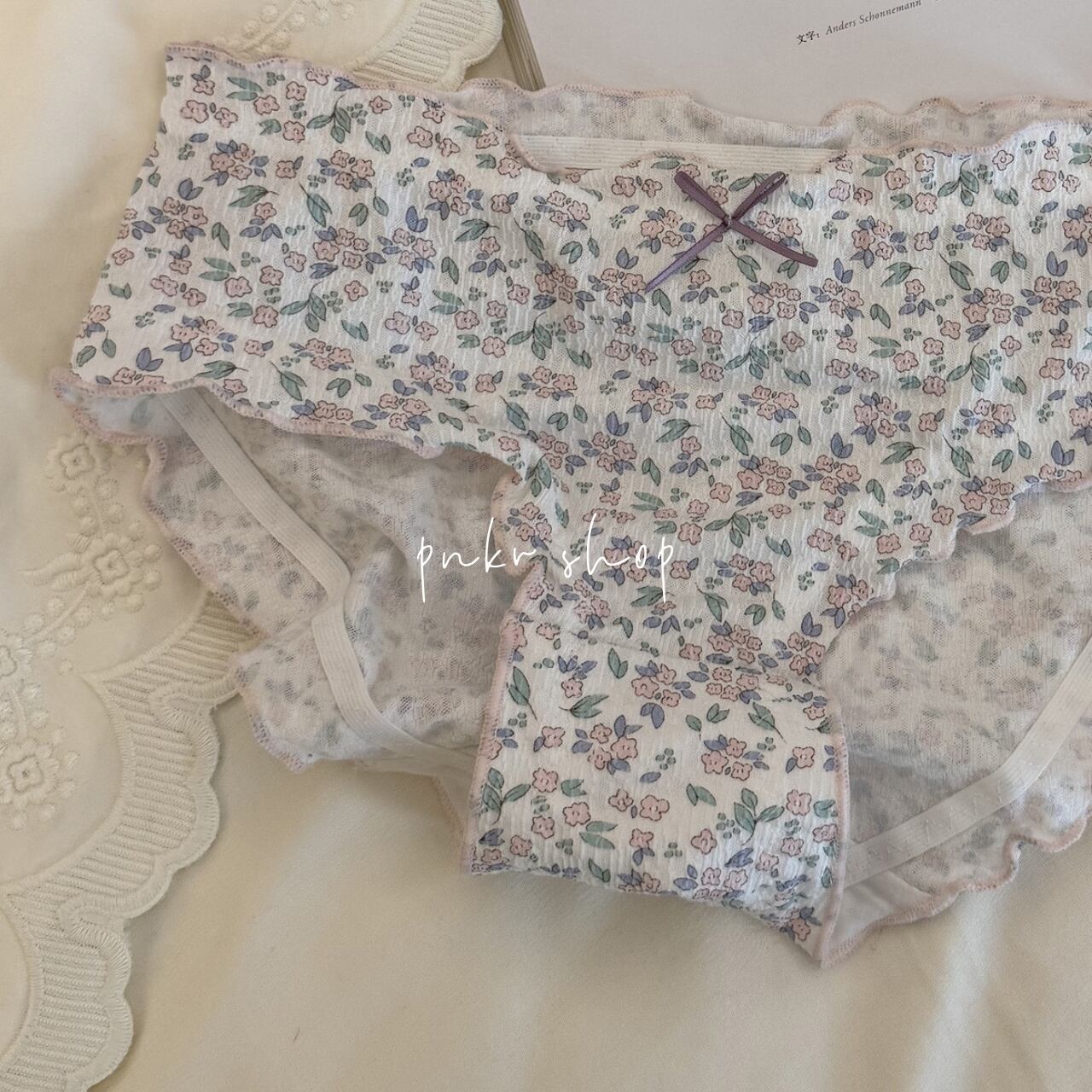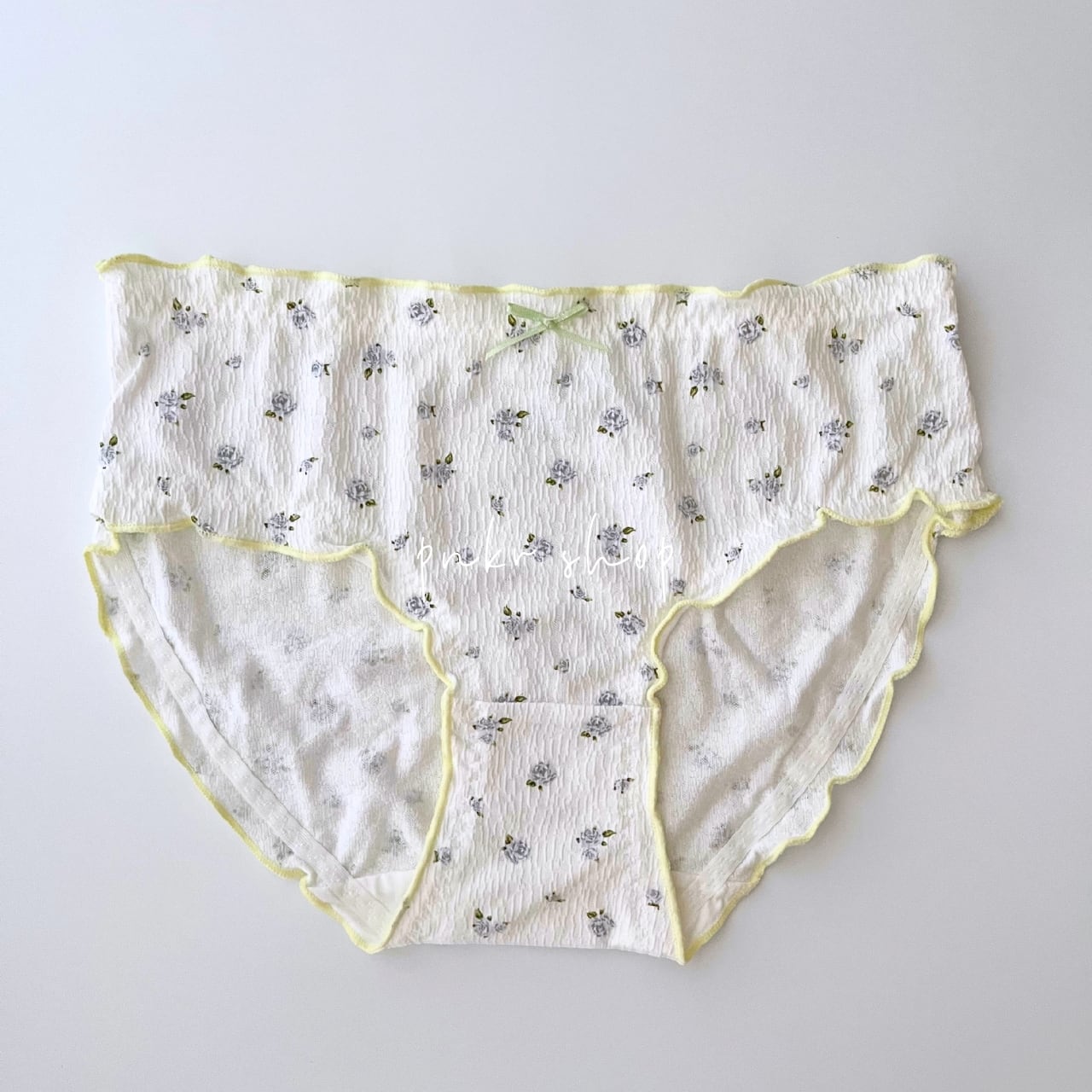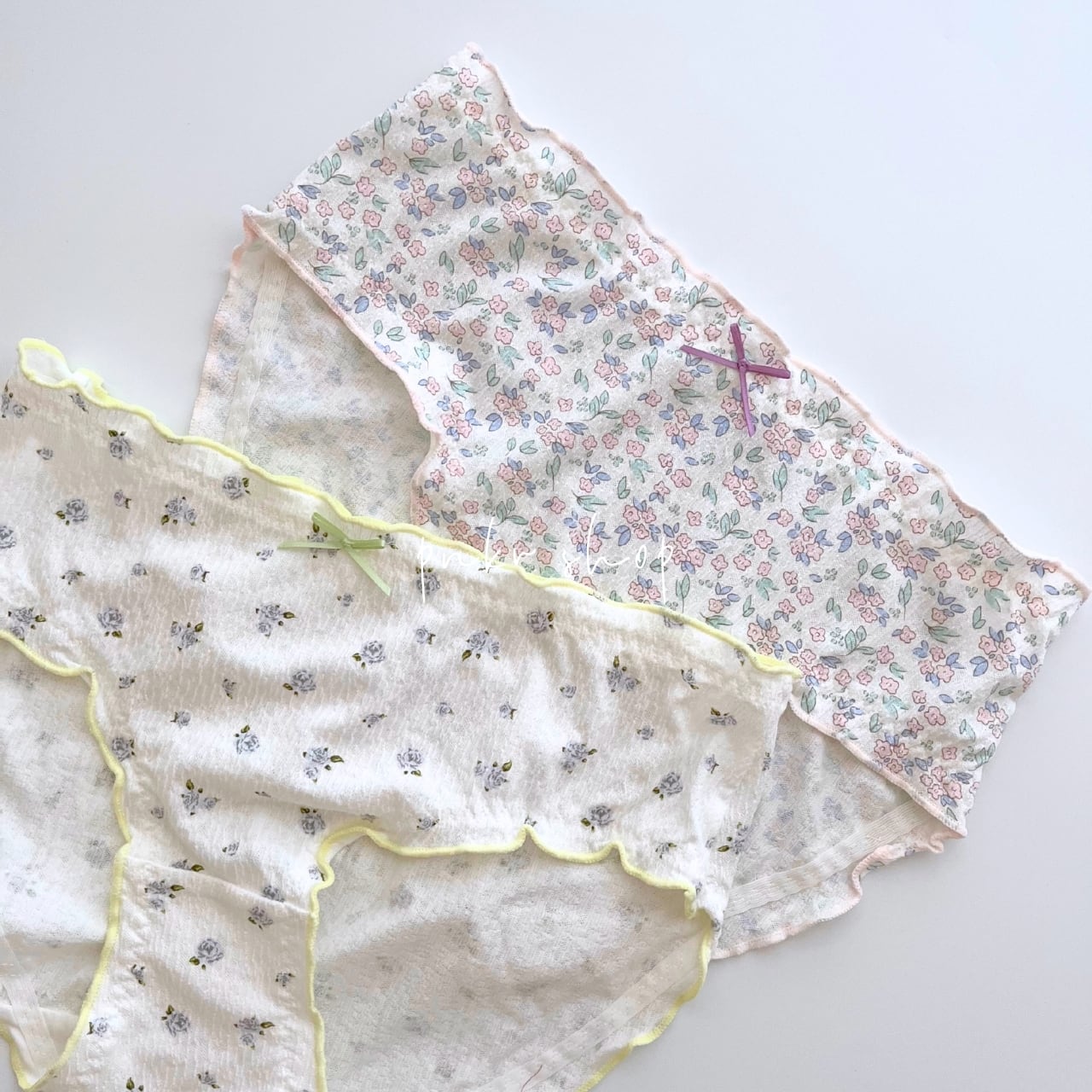 ふんわり柔らかなバブルコットン素材に小花柄をあしらったリラックスショーツ。
