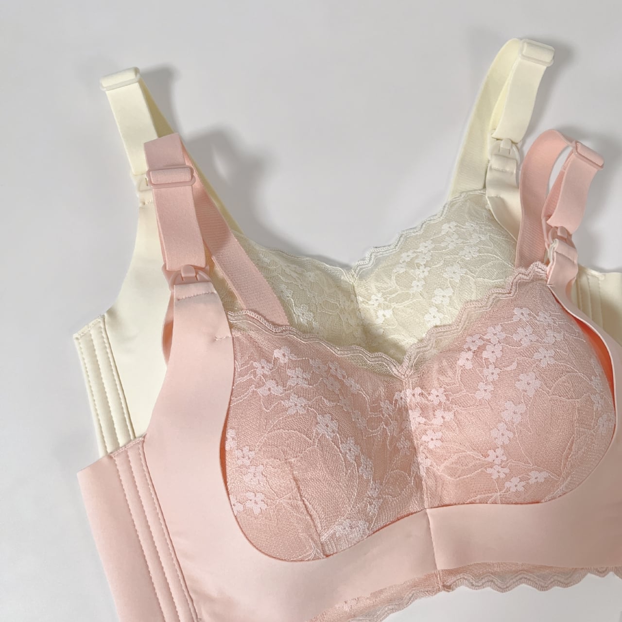 着けるだけでバストラインがすっきり見える、盛らないタイプの授乳ブラ。
