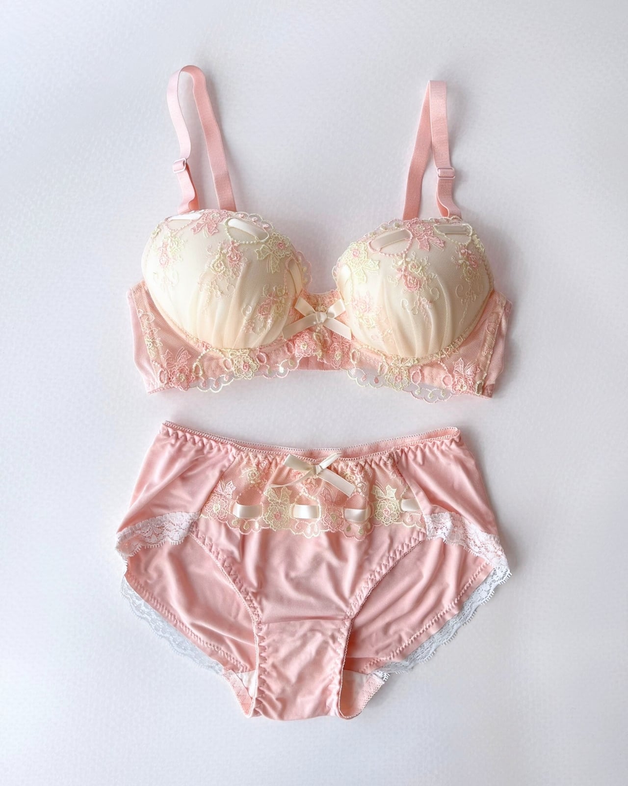 ☾Lingerie♥☽ ナチュ盛 ガーリーリボンブラ&ショーツ
