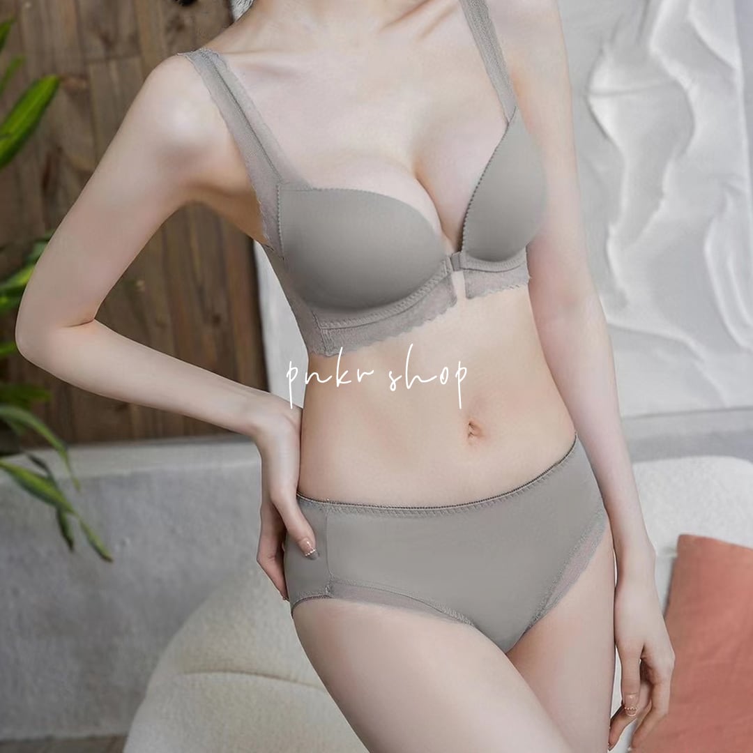 ☾肩楽ちん バックレースフロントホックブラ&ショーツ☽